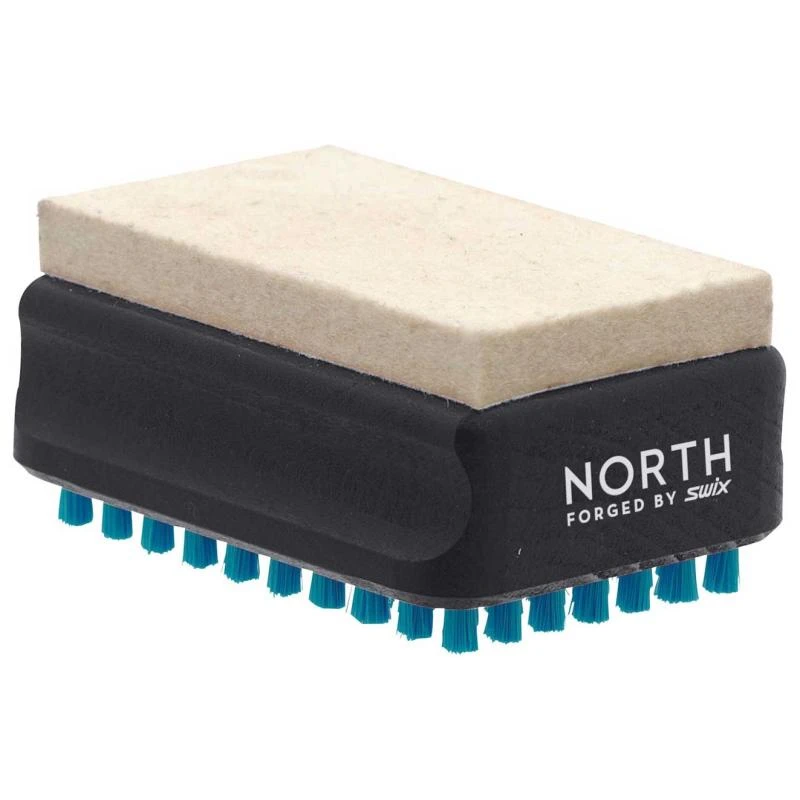 Liten og praktisk kombibørste i hendig format. For børsting og polering av hurtigglider. Den hvite filten fordeler og/eller polerer voksen mens nylonbørsten fjerner overflødig voks fra sålen. En slik prosess vil øke slitasjeevnen for voksen.